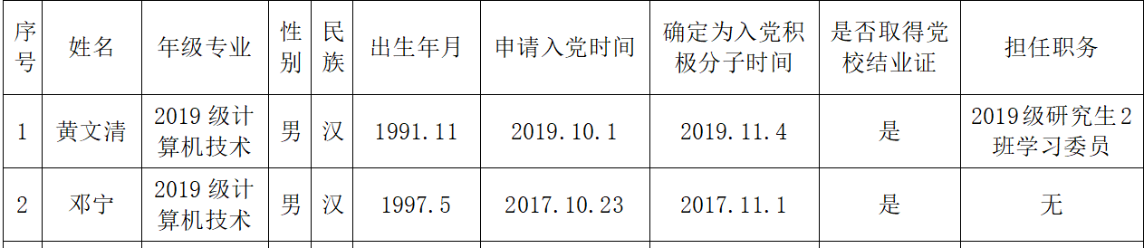 计算机与信息科学盈丰娱乐 党委计算机科学与技术(师范)一党支部关于确定陈相瀚等7名同志为发展对象的公示经盈丰娱乐 计算机科学与技术(师范)一党支部培养考察,在听取党小组、培养联系人、党员和群众意见的基础上,经党支部...