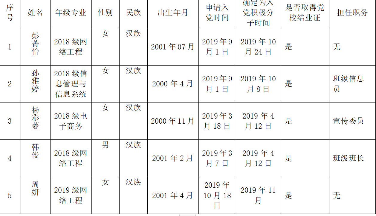 计算机与信息科学盈丰娱乐 党委 网络工程专业本科党支部关于确定彭菁怡等5名同志为发展对象的公示 经盈丰娱乐 网络工程专业本科党支部培养考察,在听取培养联系人、党员和群众意见的基础上,经支部委员会讨论同意,报...