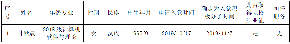 经盈丰娱乐 研究生二党支部培养考察,在听取党小组、培养联系人、党员和群众意见的基础上,经党支部(或支委会)讨论,确定林秋晨同志为发展对象。现根据学校发展对象备案制度进行公示,公示期为2021年5月24日-26日。如有...