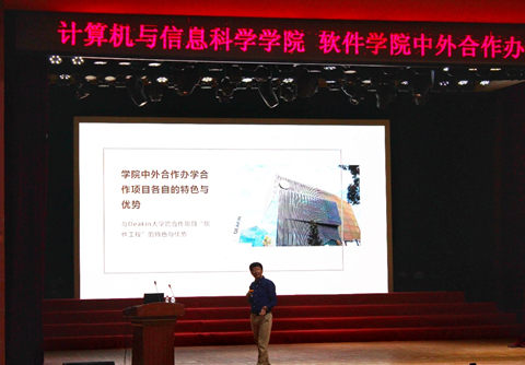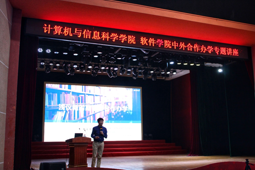 学术委员会主任、川大智胜软件股份有限公司总经理、中外合作办学专家张自力教授在西南大学大礼堂为软件工程、自动化、计算机科学与技术三个中外合作办学专业的同学,开展了题为“浅议新时期中外合作办学”的专题讲座,学生家长通过线上直播同步参加会议。
