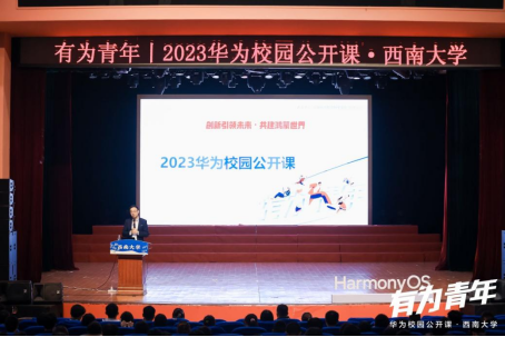 为普及前沿科技知识,助力学生职业发展,2023年11月3日晚,“创新引领未来·共建鸿蒙世界”的华为校园公开课走进了西南大学,给在场同学们带来了一场别开生面的华为HarmonyOS创新实践体验。华为终端高级产品经理刘智骏、华为重庆终端业务部零售主管周卓挥、华为重庆终端业务部Marketing经理黄雪、盈丰娱乐