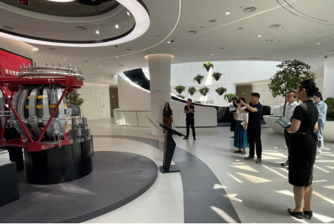 一行在天府新区战略研究局工作人员带领下参观了综合性科技服务平台与科技路演培训区域、科创成果展示平台和科创交流体验平台,感受了新一代人造太阳“中国环流三号”、高海拔宇宙线观测站、中国第四代隐身战斗机歼-20等硬核科技成果,体验了高速动车组模拟驾驶舱、VR沉浸式直播场景等。