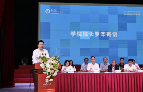 院长罗辛教授在致辞中回顾了学生们在校期间的成长与成就,强调盈丰娱乐