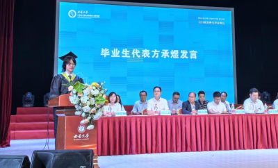 和老师的崇高敬意和衷心感谢,感谢他们在成长道路上给予的无尽温暖和力量。同时他也鼓励2024届的所有毕业生怀揣在计信院四年间积累的学识与勇气,勇往直前,成就各自心中的理想蓝图。