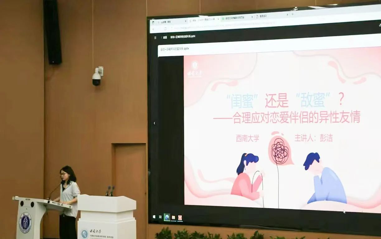 在25教一楼报告厅和1205会议室开展“青春如TA”朋辈经验分享活动,24位优秀同学代表向新生就学业成长、摄影技巧、社团活动、创新实践、恋爱交友等大学生活的方方面面进行经验分享和交流。刘屹民同学就竞选技巧进行分享,从了解部门、个人准备、个人表现等方面介绍竞选“攻略”;蔡陈博同学向大家分享自己如何成长为一名优秀的师范生,助力每一位师范新生明确方向、提升能力;郭昶宝同学向新生介绍自己领悟的摄影“大招”,使新生对摄影产生浓厚兴趣;彭洁同学分享了自己对大学生恋爱关系的看法,讲述了正确的恋爱观和妥善处理关系的方法……每位同学的分享都各具特色,精彩绝伦。数百位新生聚精会神地倾听学长学姐的成长故事和感受,积极参与互动交流。