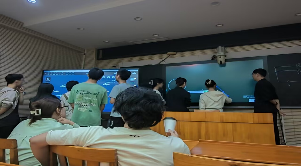 计科师范专业的同学们在朝阳中学教师的指导下,参与了学校信息化教学环境的考察与操作实战。他们通过实际操作电子白板等教学设备和系统,深刻感受了信息技术在课堂教学中的应用。通过与教师交流,师范生们进一步理解了如何借助现代信息技术优化教学设计,激发学生学习兴趣,并提升课堂教学的效率与效果。