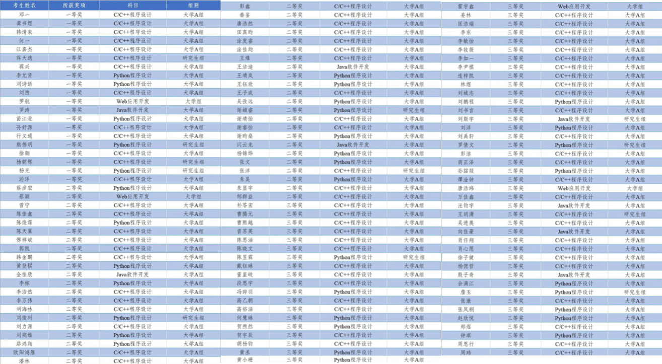 图5:蓝桥杯重庆市级赛获奖名单