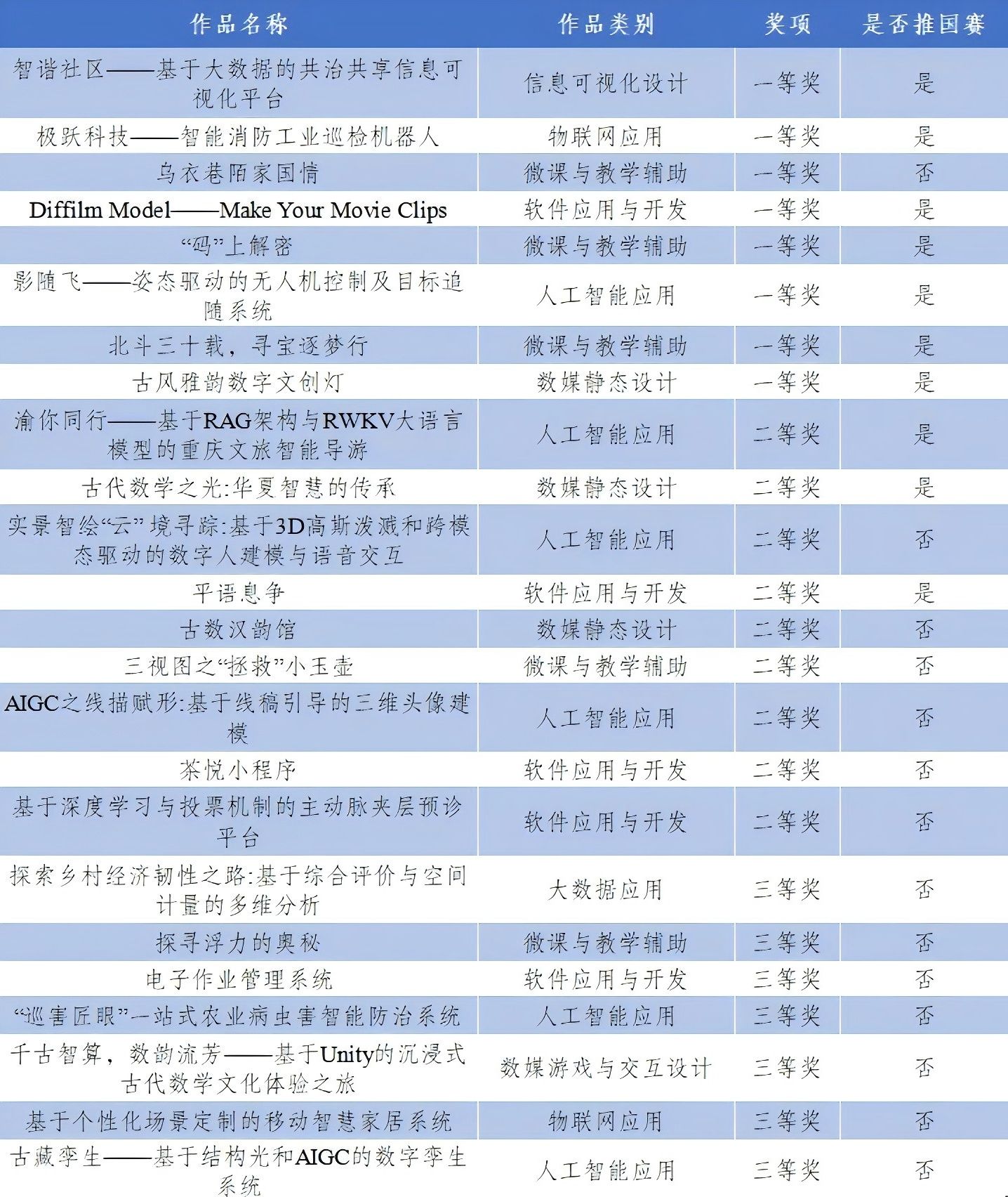 图8:第17届中国大学生计算机设计大赛重庆市级赛获奖名单