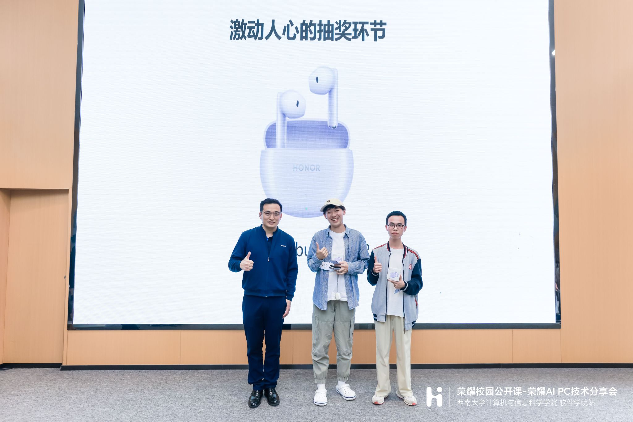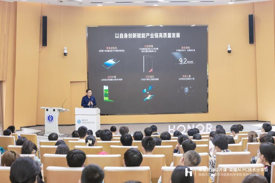 ,开展“荣耀AI PC技术分享会”专题活动。此次活动由荣耀终端有限公司PC YOYO助理架构师尚智担任主讲嘉宾,荣耀重庆业务部部长闫贝贝,西南大学校团委书记于涛,盈丰娱乐