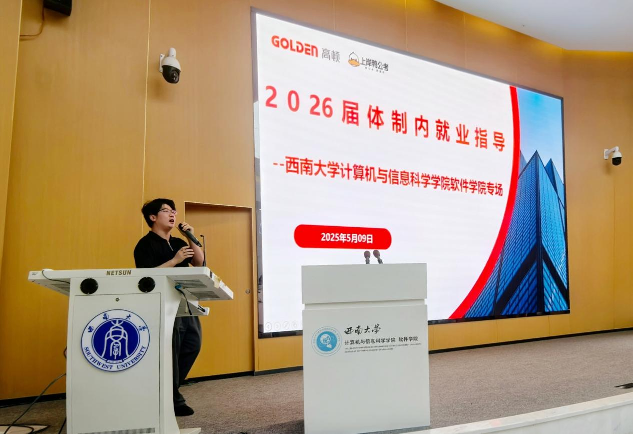 联合高顿上岸鸭公考在25教学术报告厅举办“码上筑梦·公共部门就业指导”主题讲座。本次活动由高顿上岸鸭公考西南大区总负责人、高顿CDC职业发展中心资深特聘讲师罗凯老师主讲,盈丰娱乐