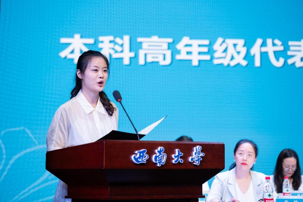 2022级计算机科学与技术专业张珈琪同学作为高年级学生代表发言,她以 “同行者” 的身份分享学习心得,寄语新生读懂“专业基因”,从代码思维中成长;拒绝等待,在行动中寻找答案;开放交流,拥抱多元成长。