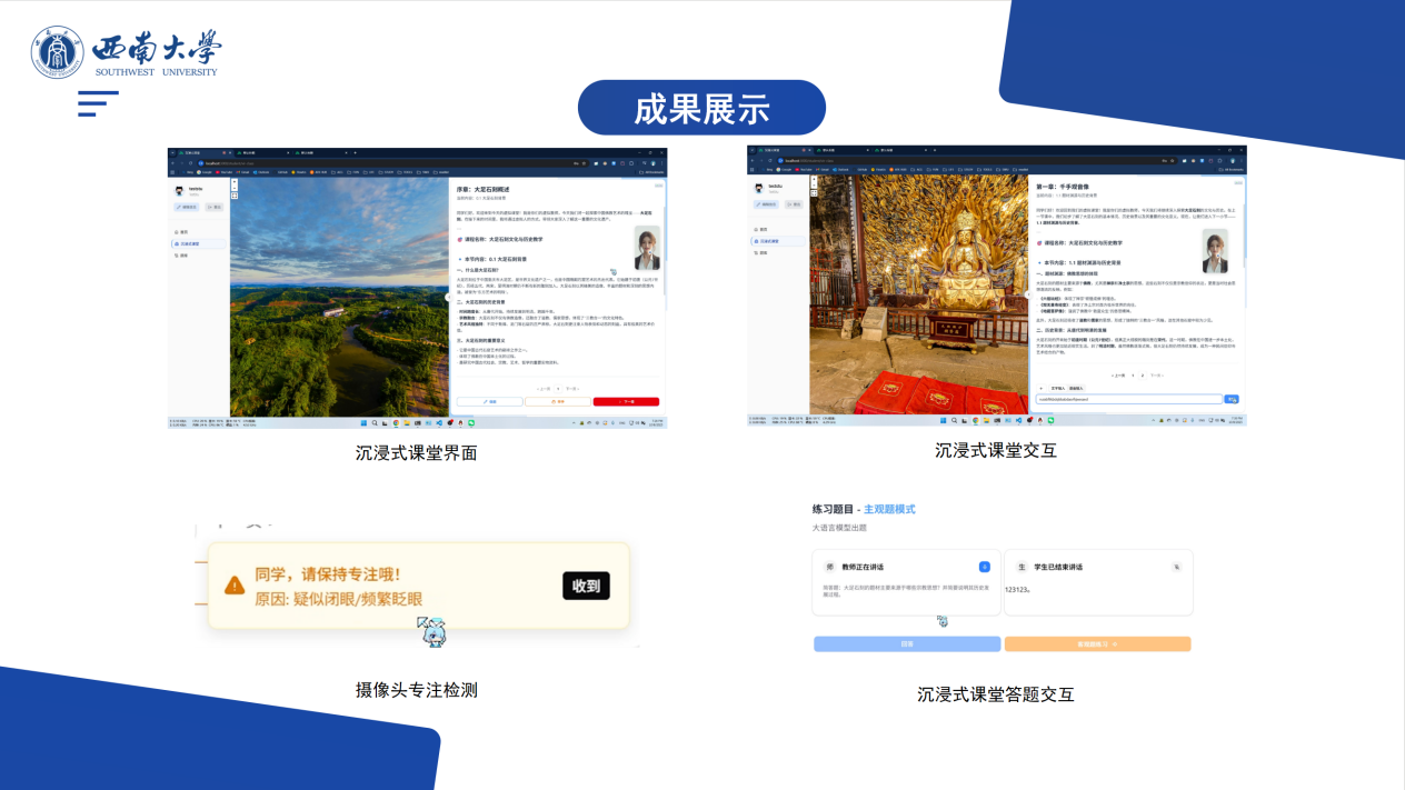 获奖项目基于大语言模型,创新性地运用RAG技术实现教育知识库的精准检索与智能回答,通过MCP协议进行核心功能的统一调度与优化,解决中小学教育资源分布不均和教师负担过重等问题。系统聚焦于学生个性化学习支持、课堂互动提升、自动化教学辅助等核心功能,构建包括板书生成、分层作业自动推荐、成长档案生成等应用模块,并打造以数字人技术为核心,具备独立可视化交互能力的智能教学助手,为学生和教师提供沉浸式的教学体验。