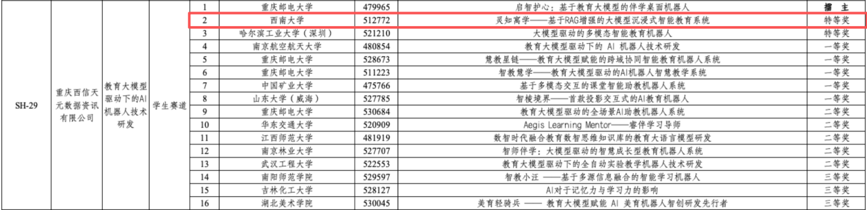师生凭借卓越的科研创新能力、扎实的学术功底与顽强的拼搏精神,在全国数以万计的参赛团队中脱颖而出,《灵知寓学-基于RAG增强的大模型沉浸式智能教育系统》项目荣获决赛“人工智能领域”全国特等奖,实现历史性突破!