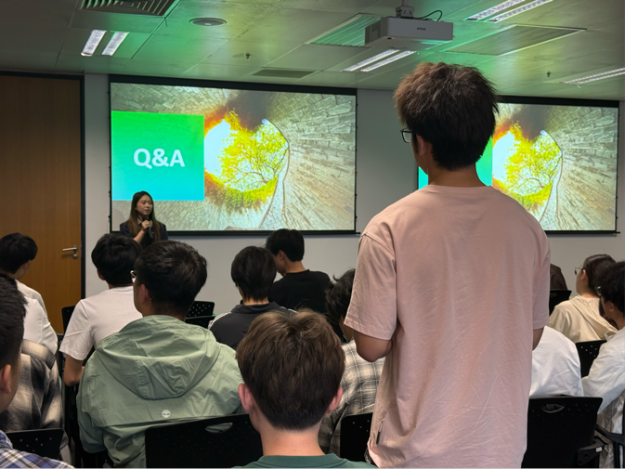 在互动问答环节,同学们踊跃提问,就专业学习、实习规划、AI对行业的影响、职场技能储备等问题与学长学姐们深入交流。学长学姐们结合自身经验耐心解答、细致指导,现场氛围热烈,同学们收获满满。