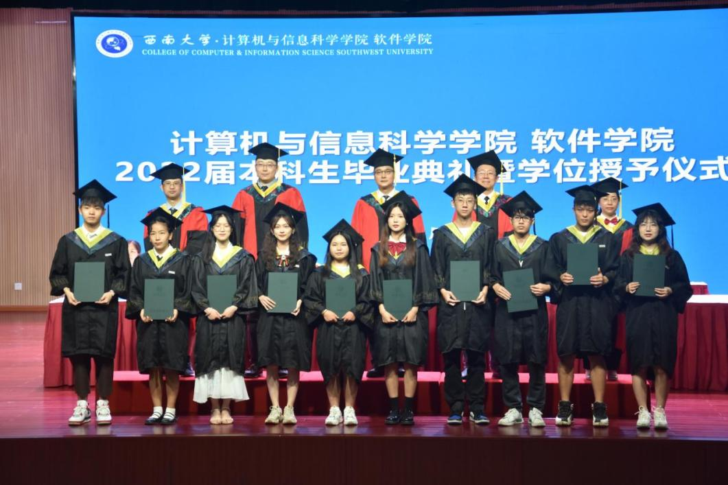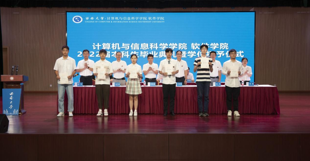 领导为优秀毕业生代表、毕业生代表依次颁发荣誉证书和毕业证书。