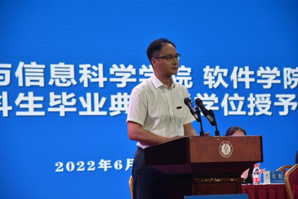院长肖国强教授代表全院教师为本科毕业生们献上诚挚的祝福,他回顾了毕业生们获得的各种奖项,并表示当前世界处于百年未有之大变局,期待在座毕业生能够为祖国和人民肩负起时代责任。同时,肖国强院长对毕业生们提出三点期许:第一要志存高远,脚踏实地;第二要勤学深思,自强不息;第三要懂得感恩,甘于奉献。
