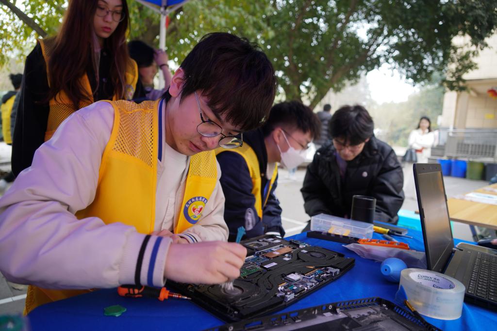 及时雨志愿者服务队在学校学生园区开展了维修电脑志愿服务活动。