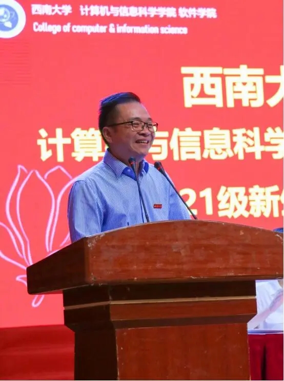 对2021级新生的到来表示热烈的欢迎。致辞中向新生提出三点建议。第一,心中有信念,脚下有力量,应向袁隆平院士研究杂交水稻的精神学习,为国家做实事。第二,练就过硬本领,保持良好心态,不怕试错,发扬家国精神,秉持奉献精神。第三,投身强国事业,把关键核心技术掌握在自己手里。并表示新生们作为计信学子,在世界百年之未有大变局,应当胸怀科技强国,民族复兴的鸿鹄之志。
