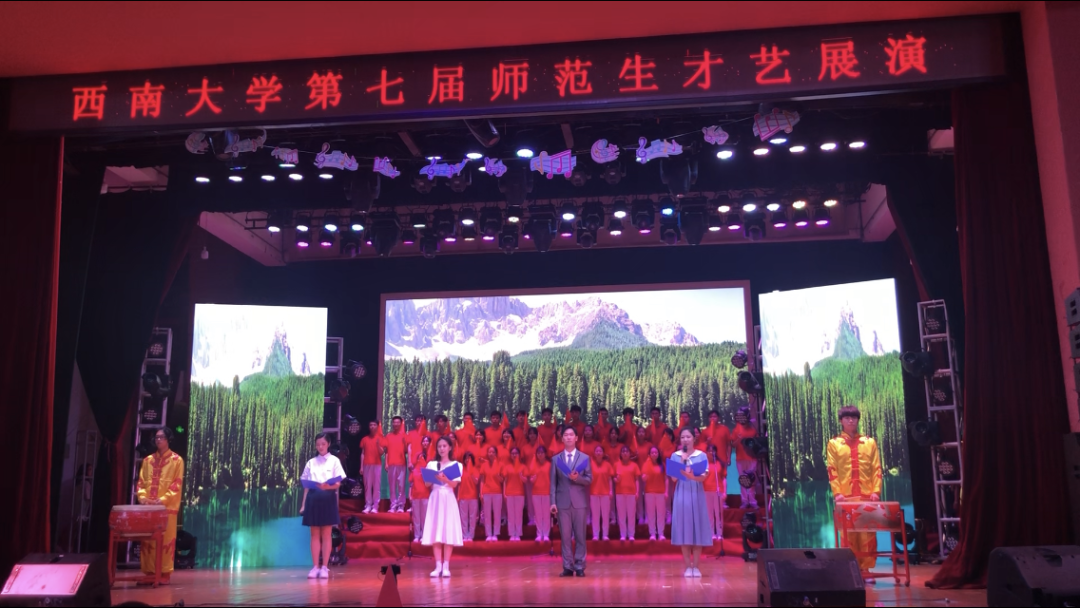 5月16日下午2点30分,“百年初心正风华,师韵献党永流传”西南大学庆祝建党100周年活动暨第七届师范生才艺展演在光大礼堂隆重举行,我院师生朗诵兼合唱节目《少年中国说》喜获三等奖。
