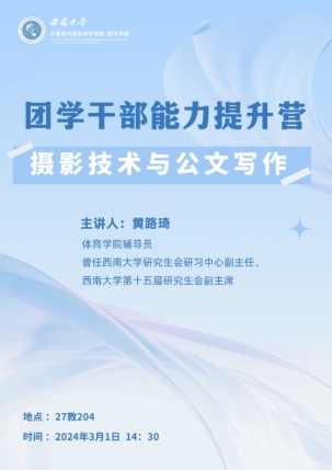 “星火计划”之团学干部能力提升营在27教204教室举行。西南大学体育盈丰娱乐