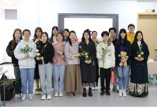 活动伊始,苏苏老师向同学们进行了插花艺术的理论讲解。她谈到,花文化是一个国家和民族文化的组成部分,是在浓厚的传统文化基础上发展起来的,因此花文化的形成与发展也必然随着国家和民族文化的兴衰而起落。在介绍中国传统插花文化时,她细梳秦汉至明清的插花艺术,就插花的历史起源、技术手法、程序排场、盘盆容器等方面进行了详细讲解,向同学们展示了中式插花艺术背后蕴含的理性意趣和人生哲理——中华民族视花为有灵之物,有情之物,赏花除了赏识它那静态的外部形态美之外,还应观察欣赏它动态的生命变化之趣。赏花不仅娱人感官,更撩人情思,能寄以心曲。