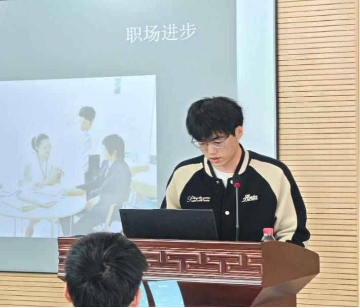 在1205教室开展“职”引人生|计信学子求职经验分享活动。2021级林成赟、汪梦龙、杨嘉俊、夏培盛四位学生代表受邀向同学们分享自己的学习和求职经验。辅导员唐瑞萱及50余名学生参加活动。