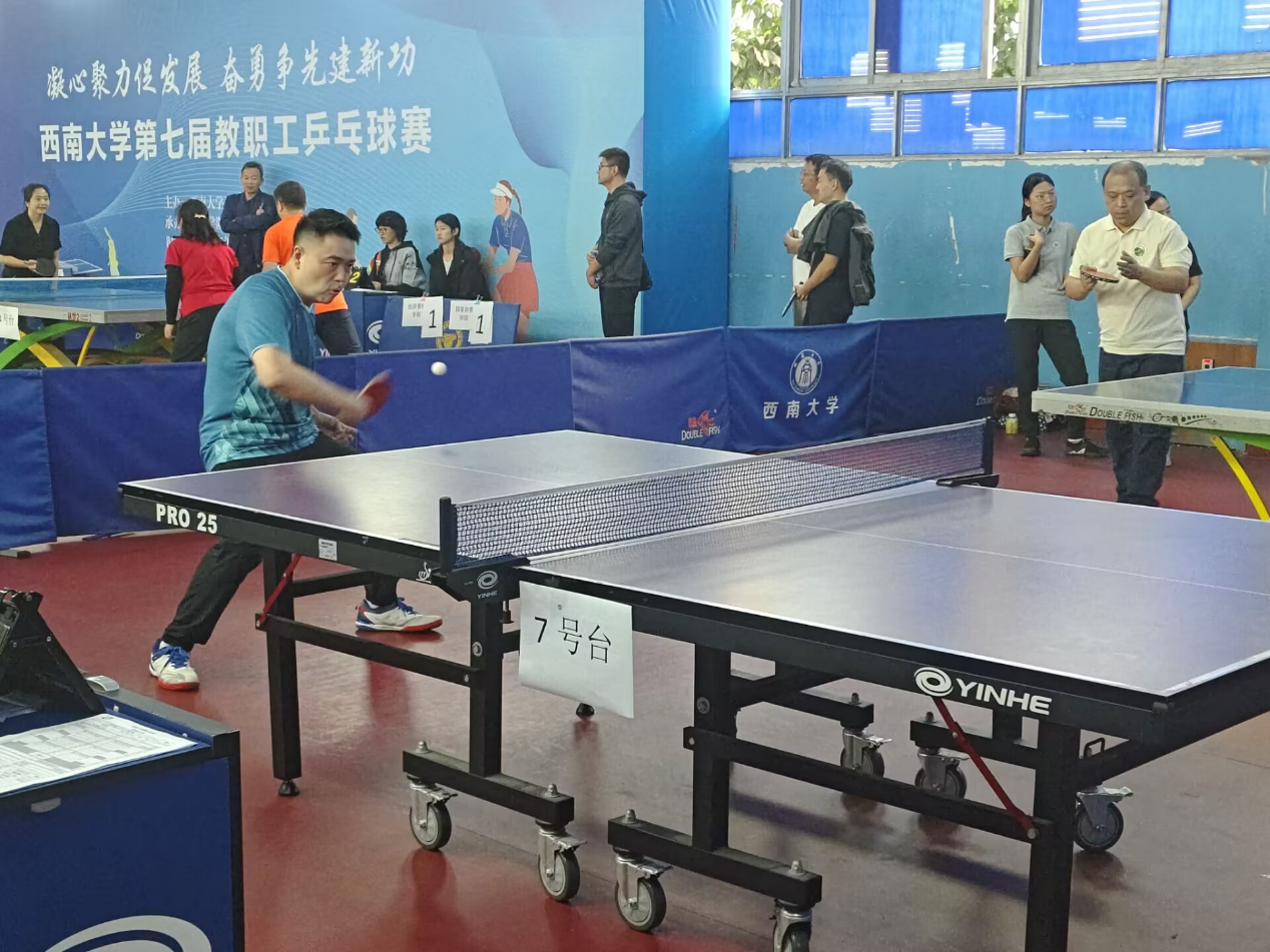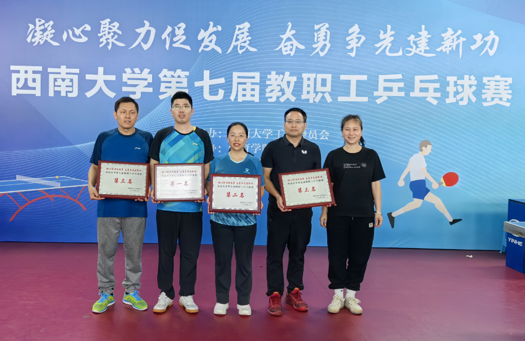 11月2日,以“凝心聚力促发展,奋勇争先建新功”为主题的西南大学第七届教职工乒乓球赛在羽毛球馆盛大开幕,由校工会委员会倾力主办。在这场紧张刺激、激情四射的比赛中,我院教职工队伍以卓越的团队协作和精湛的球技,勇夺历史最佳的第二名成绩,书写了新的篇章。