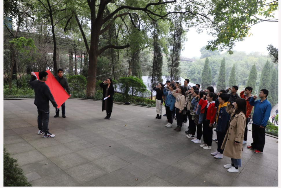 在“梅花山”石刻前,面对鲜红的党旗,全体党员在苗宗霞老师的带领下,神情肃穆、举起右拳,重温入党誓词,铿锵誓言久久回荡,让党员同志更加牢记自己的庄严承诺,是再一次深刻的心灵洗礼、思想升华、党性锻炼。