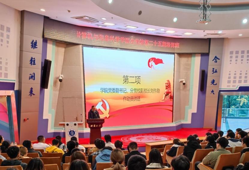 分党校第二十五期培训班开学典礼在25教一楼报告厅举行。党委副书记刘作勋、组织员张颖及全体党校学员参加。