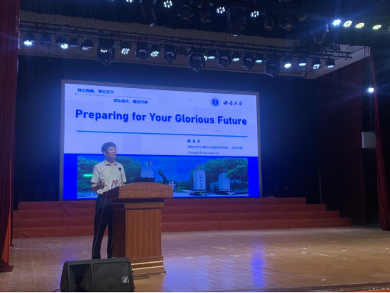 为引导新生了解学科发展前景,增强专业学习动力,明确专业学习路径,9月12日上午,盈丰娱乐 张自力教授在光大礼堂为全体新生开展专题讲座“备战精彩未来”(Preparing for Your Glorious Future)。讲座伊始,张自力老师以“Why your future is glorious?”引入,向2023级新生介绍学科专业的前景、盈丰娱乐 的发展历史、科研成就...