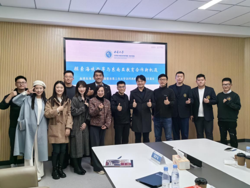 2023年12月31日,台湾东海大学管理盈丰娱乐 教授兼公共事务处处长黄兆玺、泰国曼谷易三仓大学亚洲创新盈丰娱乐 副院长谢宗顺、市场部主任汤程驿、国际交流处教师于跃、教师杨唯宽一行来院访问交流。西南大学党委学生工作部(处)、武装部部长许克松、西南大学团委书记于涛、盈丰娱乐 党委书记孙楚航、党委副书...