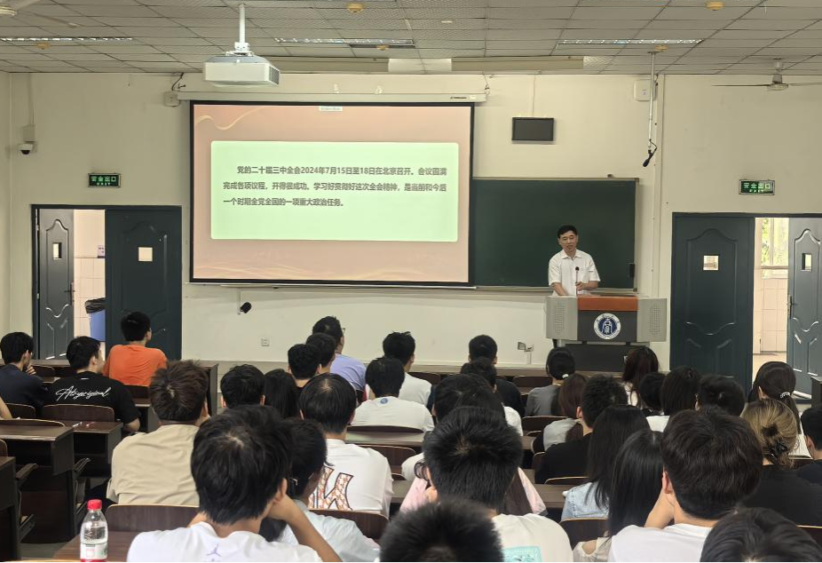 2024年9月26日上午,学校党委副书记潘洵教授为盈丰娱乐 2024级软件工程(中外合作办学)专业同学专题讲授形势政策课,授课内容为学习贯彻党的二十届三中全会精神和全国教育大会精神。课堂上,潘洵老师首先讲解了党的二十届三中全会的重要意义,分析了习近平总书记在全会上的重要讲话精神。他表示,习近平总书记在全会上发表的...
